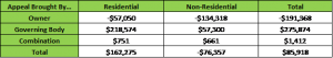 The overall net effect of owner, taxing body and combination (in this case both the owner of the property and the school district appealed the property value) appeals in 2017 was an $85.9 million increase from pre-appeal value to post-appeal value. As a percentage of the subtotals, non-residential owner appeals accounted for 70 percent of the overall drop in assessed values for properties appealed by owners. For the taxing body appeals the increase in residential value accounted for close to 80 percent of the rise in assessed value resulting from appeals.
